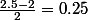 En remplaçant dans la formule: 2,50-2/2*100=0,25