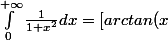 \right]_{0}^{+\infty} \\=lim_{X \to +\infty} \left( \left[arctan(x) \right]_{0}^{X} \right)=lim_{X \to +\infty} \left(arctan(X) \right) - arctan(0)\\=\frac{\pi}{2})
