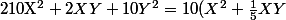 +10Y^2=10(X^2+2X\frac{1}{10}Y+(\frac{1}{10}Y)^2-(\frac{1}{10}Y)^2)+10Y^2)