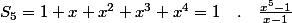 est la somme des 5 premiers termes de la suite géométrique de premier terme 1 et de raison x