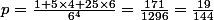 Comme tu effctues 24 lancers successifs indépendants, la probabilité d'avoir à tous les lancers 0 ou un 6 est de