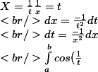 dt=\int_a^b cos(x) \frac{-1}{x^2}dx\\<br />=[cos(x)\frac{1}{x}]_a^b+\int_a^b \frac{sin(x)}{x}dx)