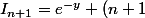 I_n = e^{y} + (n+1) \times n! e^{-y}\sum_{k=0}^n \frac{y^{n-k}}{(n-k)!})