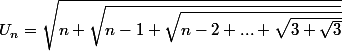 J'ai essayé de calculer U2=racine(3) ; U3=racine(3+racine(3)) ; ... rien de très concluant ...