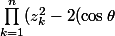 z_k+1)=\prod_{k=1}^n(z_k-e^{i\theta})(z_k-e^{-i\theta})=\prod_{k=1}^n(z_k-e^{i\theta})\prod_{k=1}^n(z_k-e^{-i\theta})=\prod_{k=1}^n(e^{i\theta}-z_k)\prod_{k=1}^n(e^{-i\theta}-z_k))