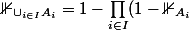 Si I est infini, la formule marche encore modulo de donner un sens au produit infini en question (évidement en disant qu'il vaut 1 si tout les termes sont =1 et qu'il vaut 0 si un des termes vaut 0)