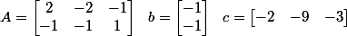 : \ \ \left \{ \begin{array}{lrrrrrrcccl} max \ \ \ z_c & = & - & 2x_1 & - & 9x_2 & - & 3x_3 \\ s.c \\ & & & 2x_1 & - & 2x_2 & - & x_3 & \le & - & 1 \\ & & - & x_1 & - & x_2 & + & x_3 & \le & - & 1 \\ & & & & & & & x & \ge & & 0 \end{array} \right.)