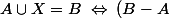 \cap (A \cup X ) \;=\; (B - A) \cap B)