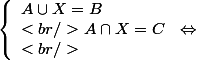 : \left\{<br /> \begin{array}{ll}<br /> A \cup X = B \\<br /> <br /> A \cap X = C \\<br /> \end{array}<br /> \right.)