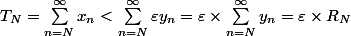 Dans la question, on considère (xn) et (yn) deux suites de réels strictement positifs et on suppose que les séries de termes généraux xn et yn convergent, et que xn=o(yn) quand n tend vers l'infini.