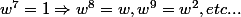 Soit w une solution complexe différente de 1 de l'équation z^7=1.