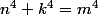 J'ai testé par calcul P(k) = k^1 +k^2 +k^3 +k^4 sans trouver P(k)+P(j) = P(n) en faisant varier k, j et n de 1 à 1000. Bien sûr ce n'est pas une démonstration mais cela me laisse croire que cette égalité est impossible.