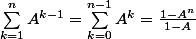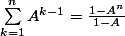 somme de k=1 à n de A^(k -1)= (1-A^n)/1-A