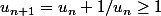 On a u(n+1)=u(n)+1/u(n), d'après l'HR u(n) supérieur ou égal à 1 donc 1/u(n) compris entre 0 et 1 et la somme est supérieure à 1.