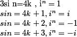 Ou alors je prends les termes du plus haut degré (mais je ne sais pas on a le droit avec le [/tex]i^n[/tex] et alors à chaque cas c'est