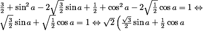 <=> 1 - racine(3/2) sina - racine(1/2) cosa = 0.