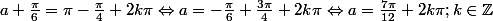 =\frac{\sqrt{2}}{2}\Leftrightarrow <br />\sin\left ( a+ \frac{\pi }{6}\right )=\sin\frac{\pi }{4})
