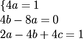 4ax² +x(4b -8a) + 2a - 4b + 4c = x² +1